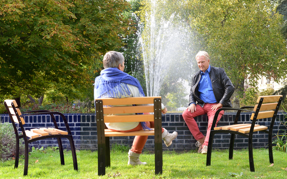 We also offer several innovative solutions, such as products that stimulate mobility in the elderly. To this end, we have developed our Vivanti product line, designed specifically to provide the elderly with a comfortable place to take a break from walking or shopping. The Vivanti senior bench even offers parking space for a wheeled walker.