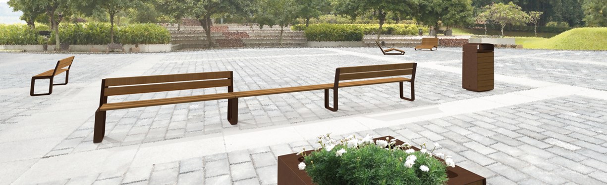 The Reposa circular line is a diverse and sustainable product range with a timeless appearance, founded on the principle of minimal materials use. This wide assortment of fully recyclable products are a perfect match with one another. Since they are modular in construction, and employ interchangeable materials, a wide variety of different combinations and forms can be created. Compared to other types of steel, the production of corten (‘weathering’) steel is associated with considerably lower CO2 emissions. Corten steel is also 100% recyclable. Together with CO2-neutral bamboo, these products have a longer working life and a smaller CO2 footprint.